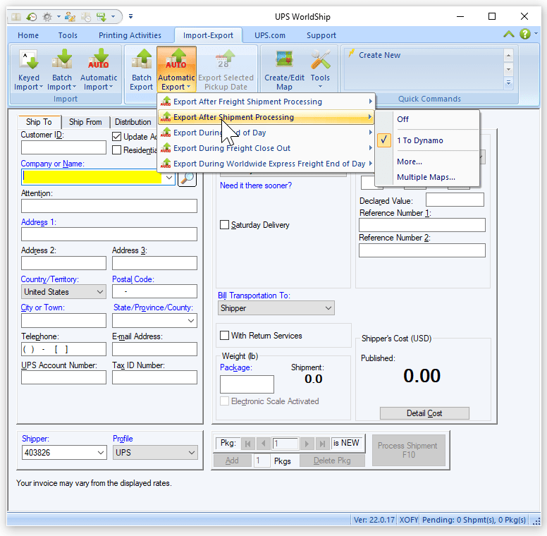 Import customer addresses into UPS batch system to produce shipping labels and order documentation for 100+ corporate clients